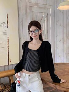 黑色两件套(开衫+吊带)