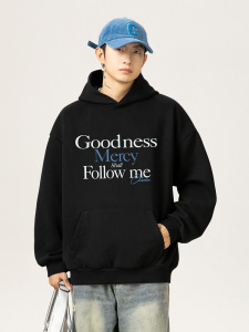 撞色字母印花连帽卫衣春季款400G重磅美式休闲情侣宽松帽衫外套q