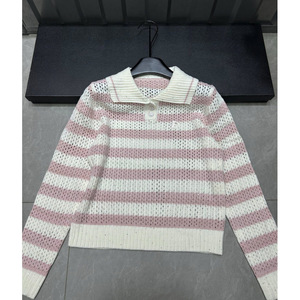 2025年秋季新款迪家字母亮片镂空针织翻领长袖套头宽松百搭女上衣