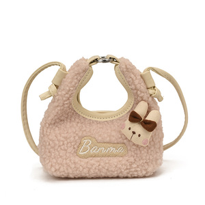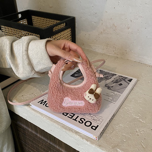 超火羊羔毛手拎小包新款可爱迷你女童精致少女口红零钱包斜挎包潮