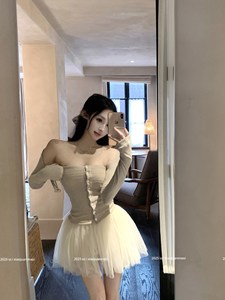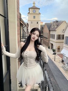 法式千金感套装气质长袖披肩开衫抹胸背心女秋季网纱半身裙三件套