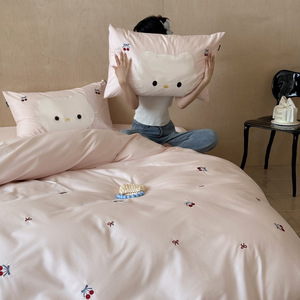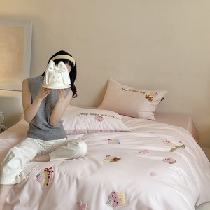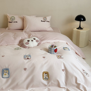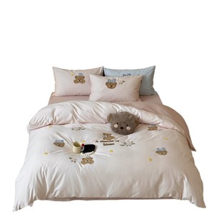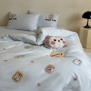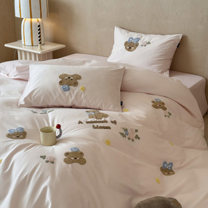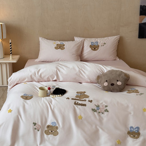 可爱小熊100S全棉磨毛四件套秋冬卡通毛巾绣纯棉床品1.8m床单被套