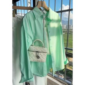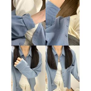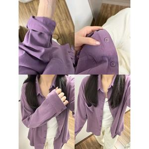 100%纯棉法式时尚衬衫女叠穿夏季薄款百搭显长袖衬衣防晒衣开衫