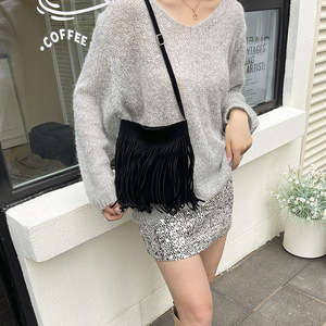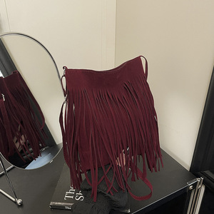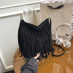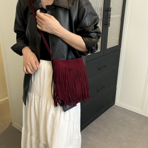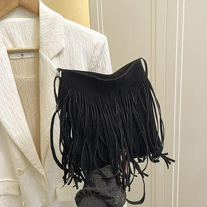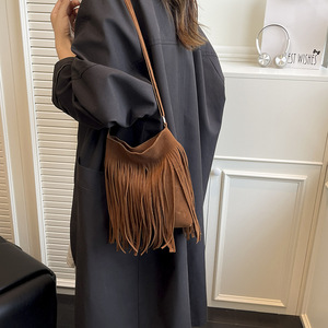 高级感磨砂流苏小包包女2025新款潮时尚通勤水桶包春季百搭斜挎包