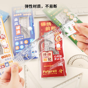 创意未来可期励志套尺 学生画画直尺三角板套装量角器尺子四件套