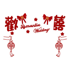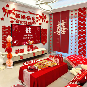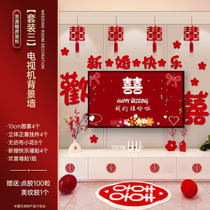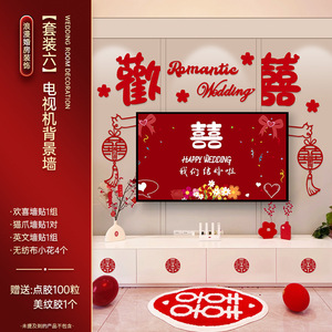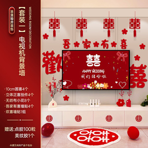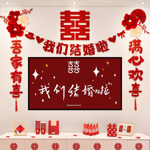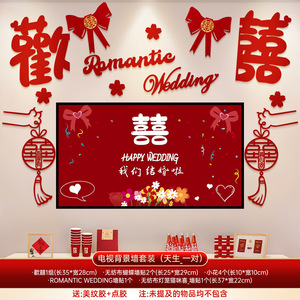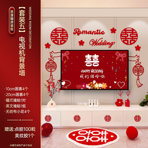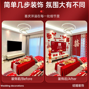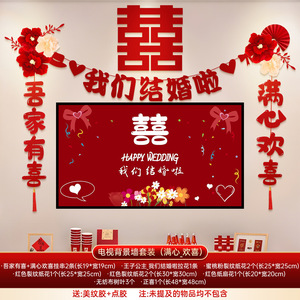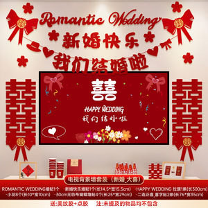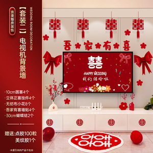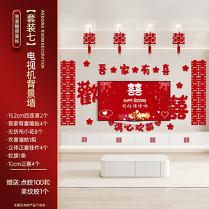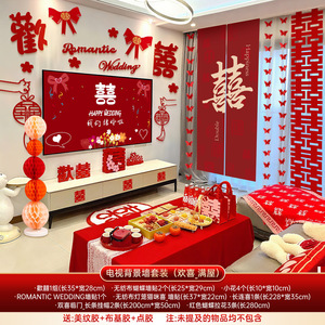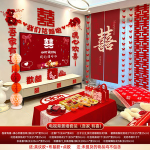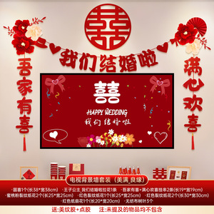 婚房布置套餐婚礼男女方新房客厅晨袍拍照电视背景墙喜字拉花装饰