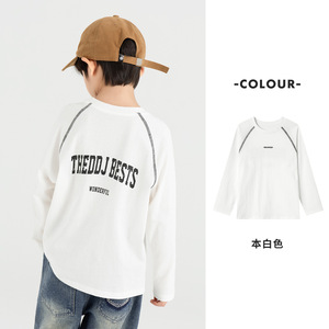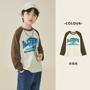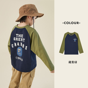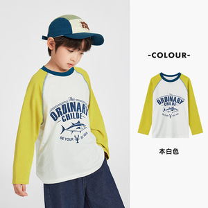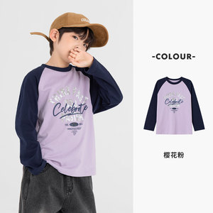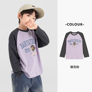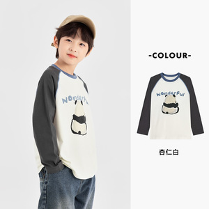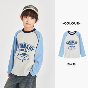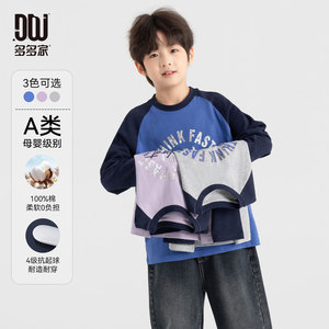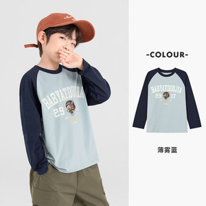 多多家儿童纯棉长袖春秋款男童A类插肩袖印花T恤中大童休闲上衣
