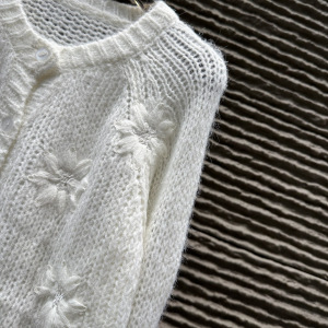 ce25秋冬新款纯色气质立体刺绣花朵针织开衫