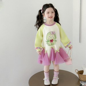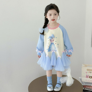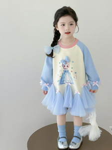 女童网红连衣裙春秋装2025新款儿童公主裙小女孩网纱拼接卫衣裙子