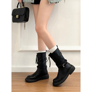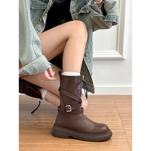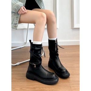 圆头厚底中筒马丁靴女2025新款复古骑士靴机车靴短靴