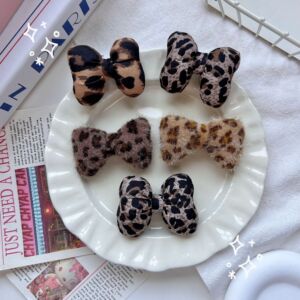 新款豹纹蝴蝶结发夹后脑勺小抓夹半扎头饰发卡发饰手机壳配件批发