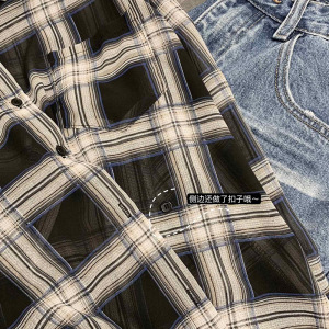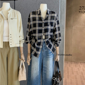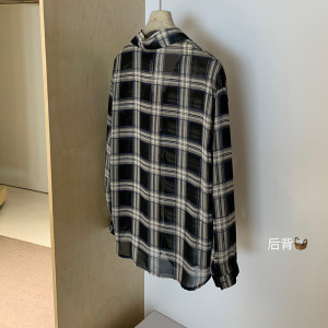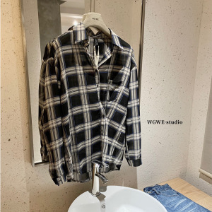 WGWE7162韩系格子防晒衣长袖衬衫高级配腰带显瘦上衣