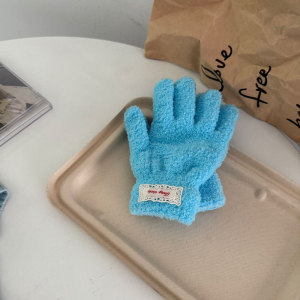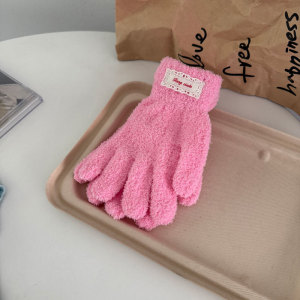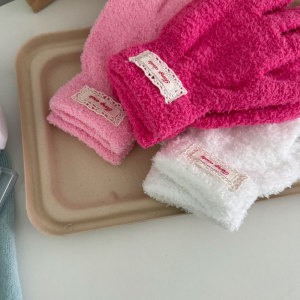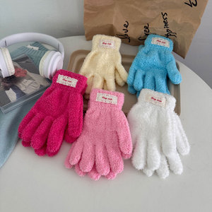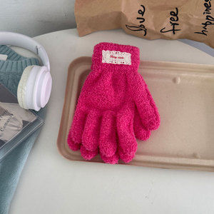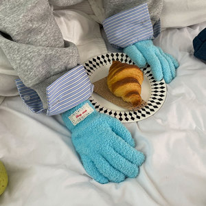 奶油状毛绒绒纯色系外出骑行保暖五指分开手套韩系女主针织学生