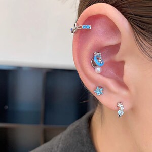 冰河时序 清冷海星高位耳垂钉耳圈耳环蓝色闪钻耳钉耳骨钉环