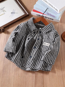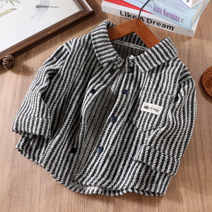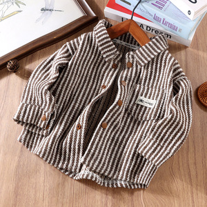 儿童翻领外套新款男童条纹上衣春秋洋气长袖衬衣男孩衣服2025秋款