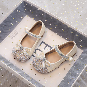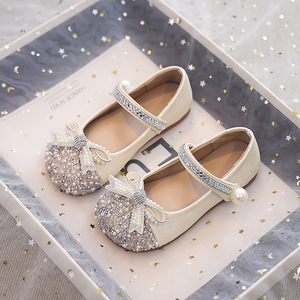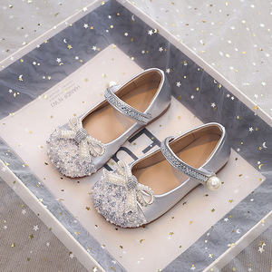 女童时尚水钻公主鞋2025秋季新款浅口单鞋中大童蝴蝶结水晶鞋皮鞋