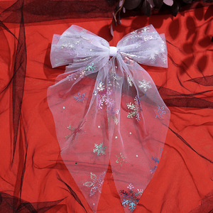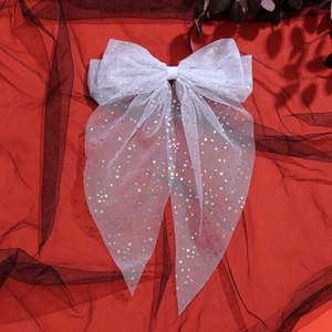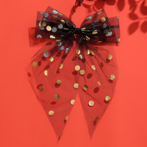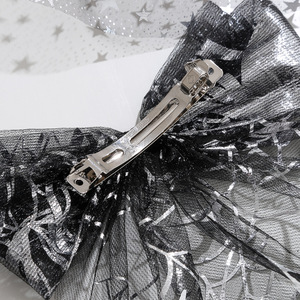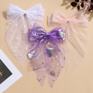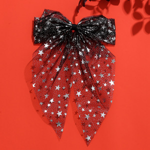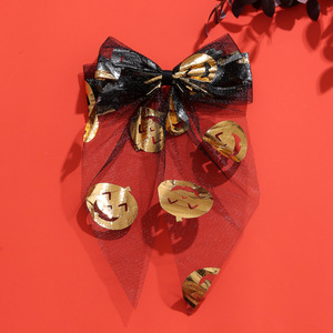 跨境新款万圣节飘尾蝴蝶结发夹印花网纱后脑勺马尾黑色发饰头饰