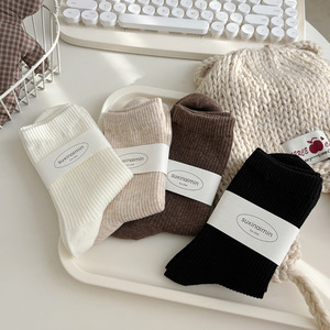 suxinaimin原创女袜秋冬中筒袜纯色百搭无骨堆堆袜简约ins袜子女