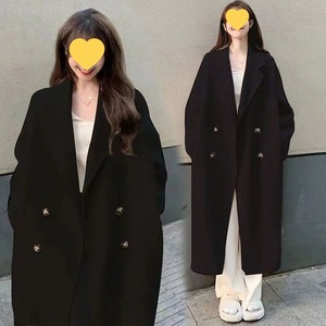 韩系长款外套女新款加厚毛呢大衣外套小个子显瘦2025秋冬季纯色