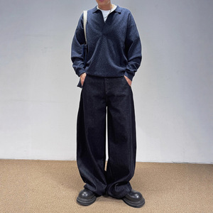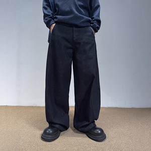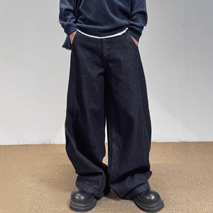 美式高街cleanfit复古明线水洗做旧牛仔裤男时尚帅气宽松阔腿裤子