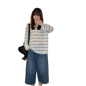 奶兔星球-自制 薄防晒条纹罩衫女夏5新慵懒风宽松长袖衣