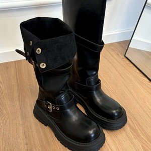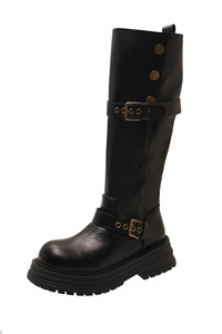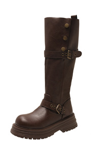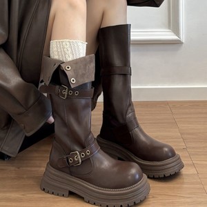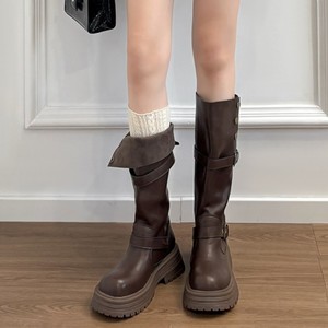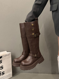 厚底棕色美拉德长筒高筒靴子女夏2025新款秋配裙子西部牛仔骑士靴