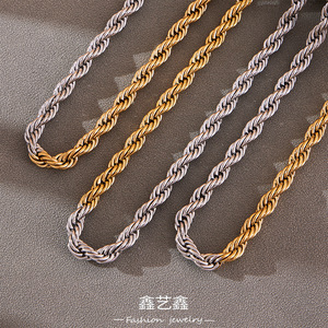 鑫艺鑫欧美不锈钢加粗麻花链双色间电项链时尚设计感男女同款项饰