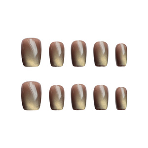 深秋茶色猫眼高级质感气质少女风御姐风显白美甲短款30-T穿戴甲