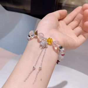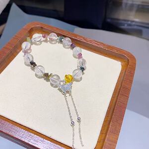 白水晶搭配碧玺碎石加蝴蝶配饰手串简约百搭小众时尚精致手链女款