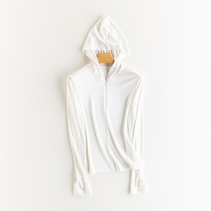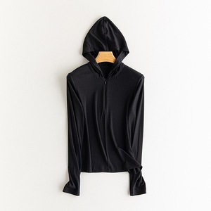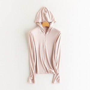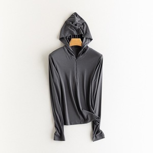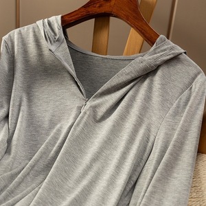 随性松弛 法G免烫连帽半开襟含真丝长袖针织T恤女