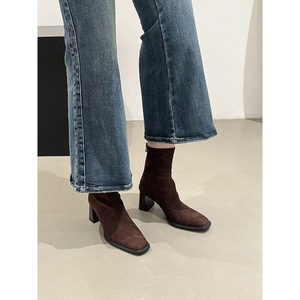 粗跟复古黑色绒面瘦瘦靴小短靴女鞋2025新款秋季百搭韩系小踝靴子