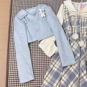 新款秋季一整套法式时尚减龄复古设计毛球格纹连衣裙+短款外套女