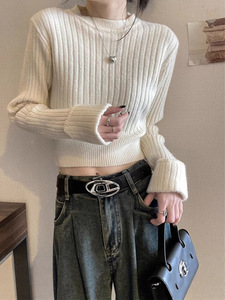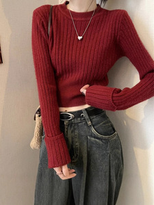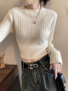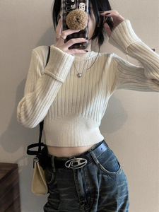 别致修身圆领打底衫女秋冬2025新款高级感毛衣内搭长袖针织衫上衣