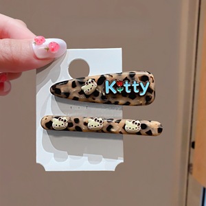 可爱hellokitty猫咖色豹纹发夹侧边刘海夹子额前碎发鸭嘴夹头饰女