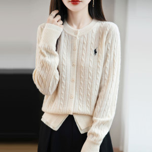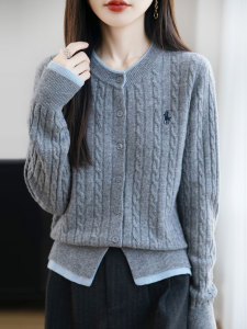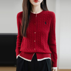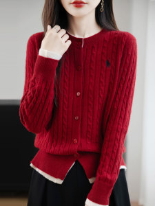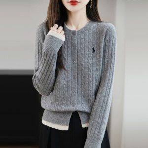 【厂家直供】秋季新款拼色假两件开衫外套短款女士毛衣刺绣外搭潮