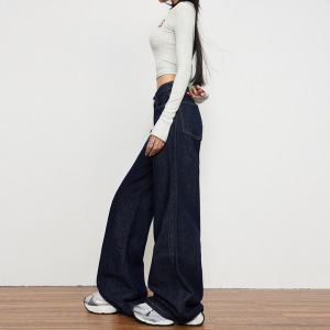 美式深蓝色大码低腰提臀显瘦百搭阔腿不褪色牛仔裤女2025早秋新款