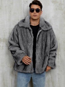 F0965跨境秋冬新款亚马逊爆款时尚翻领毛绒男士仿皮草保暖厚外套