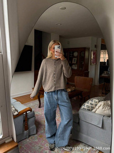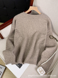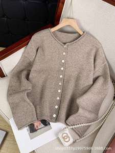 女士秋冬纯色针织开衫 卷边圆领扭扣 宽松毛衣外套 舒适百搭热卖