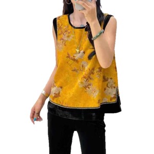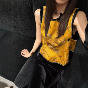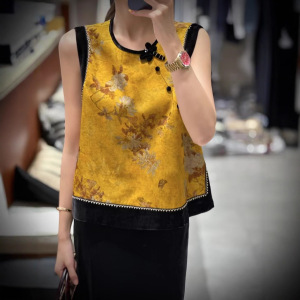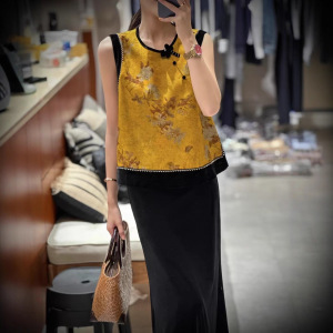 2025秋款轻奢新中式真丝羊毛+真丝丝绒百搭款拼色马甲背心96