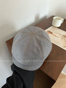 2025年新款牛仔贝雷帽子女春秋复古英伦风反戴八角帽显脸小鸭舌帽