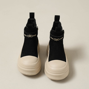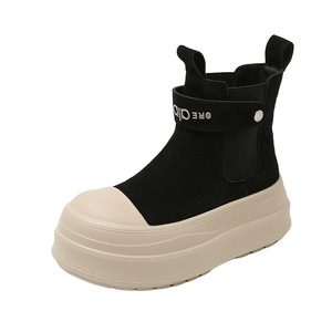 松糕增高厚底瘦瘦靴女2025秋季新款魔术贴弹力靴百搭休闲马丁短靴