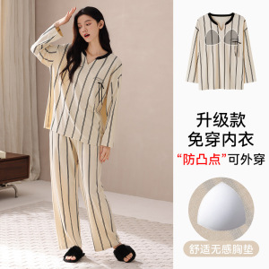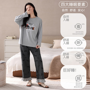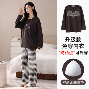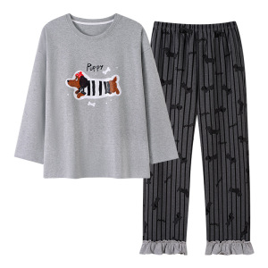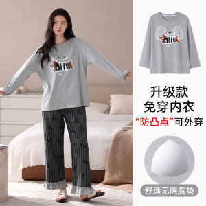 【带胸垫】抗菌棉睡衣女士纯棉长袖春秋季可爱腊肠小狗家居服套装