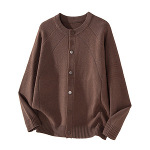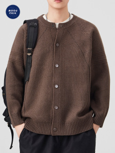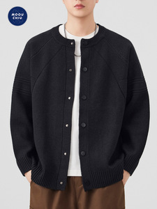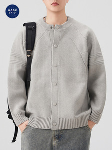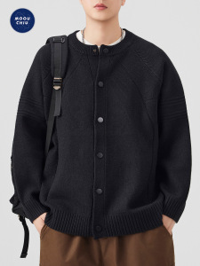 沐丘男装∣2025秋冬新款插肩袖肌理感毛衣男士宽松开衫针织衫外套