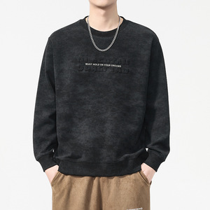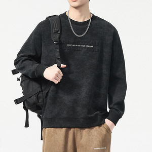 安洋美式复古潮牌扎染字母钢印卫衣男士2025秋季新款重磅圆领长袖