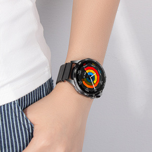 新款适用华为gt5/6米兰尼斯表带钢带升级按压头粒快拆表带大磁吸