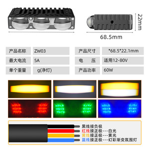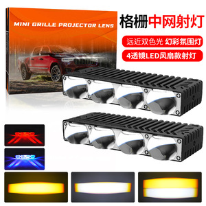 新款汽车格栅中网射灯黄白远近一体七彩日行灯超亮矩阵激光前照灯