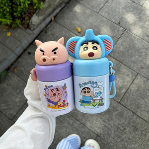可爱蜡笔小新保温杯女生高颜值小巧便携杯子学生上学专用儿童水杯