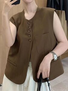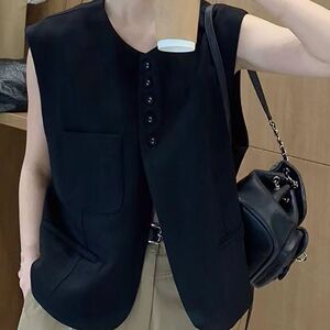 欧洲站马甲女2025春秋新款设计感单排扣无袖西装马夹百搭宽松坎肩