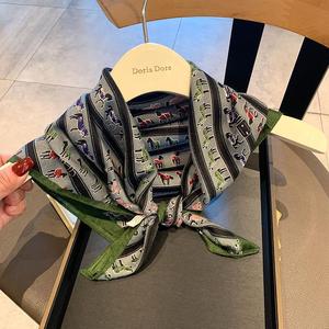 丝巾系脖高级感2025新款小方巾复古绿色骏马领巾搭西装的头巾颈饰