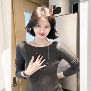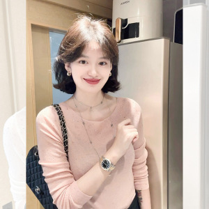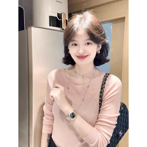 重工烫钻针织打底衫女秋季法式温柔设计感小个子修身洋气内搭上衣